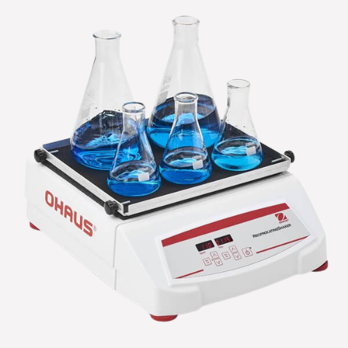 OHAUS Reciprocating Shakers are designed for a range of applications including cell cultures and extraction procedures that require accurate, repeatable results. These shakers provide consistent, uniform shaking action. The back-and-forth reciprocating motion has a 19 mm stroke length. Permanently lubricated ball bearings and a maintenance-free, brushless DC motor provide reliable service and